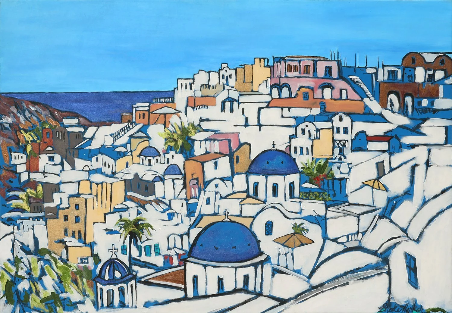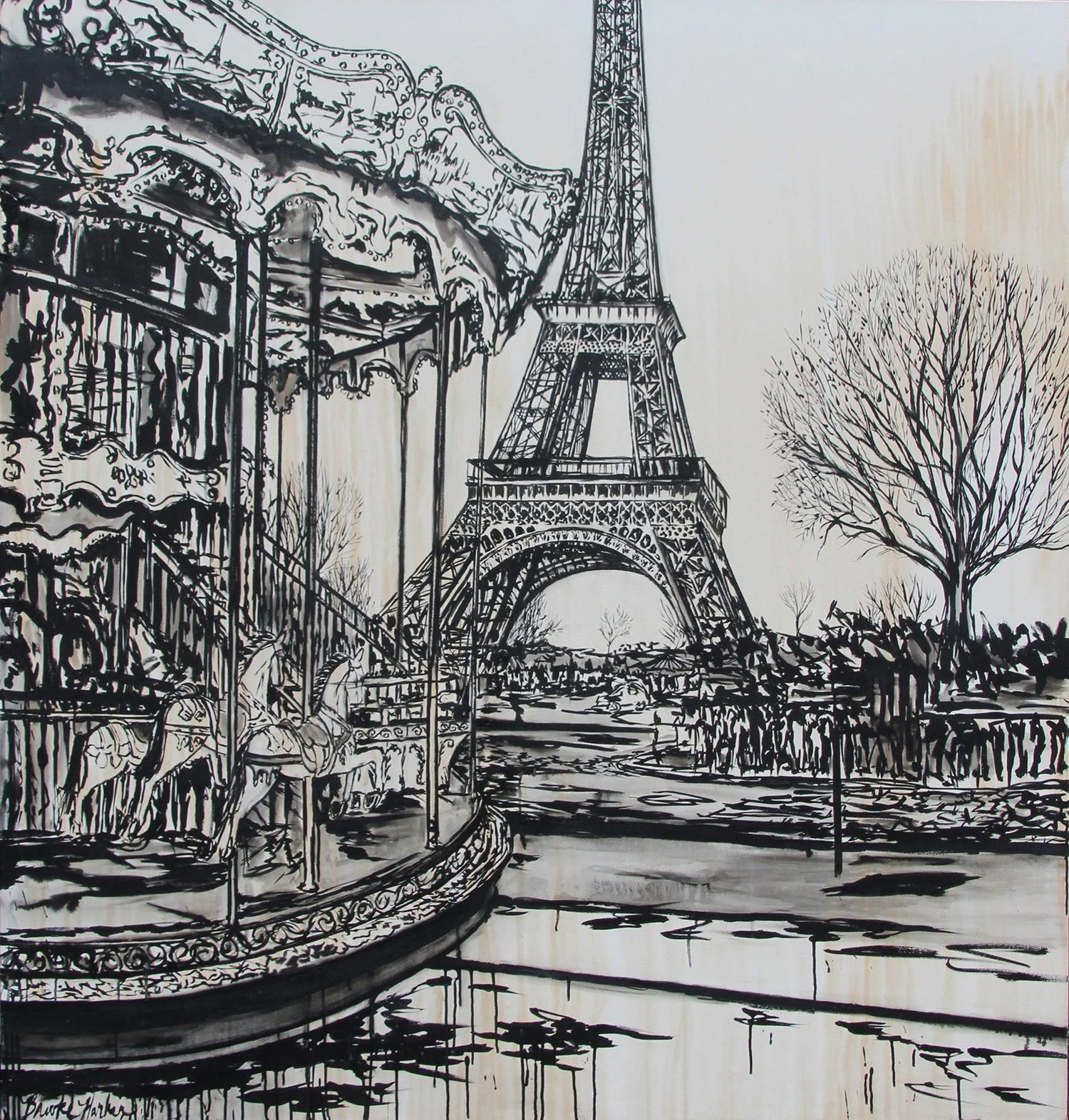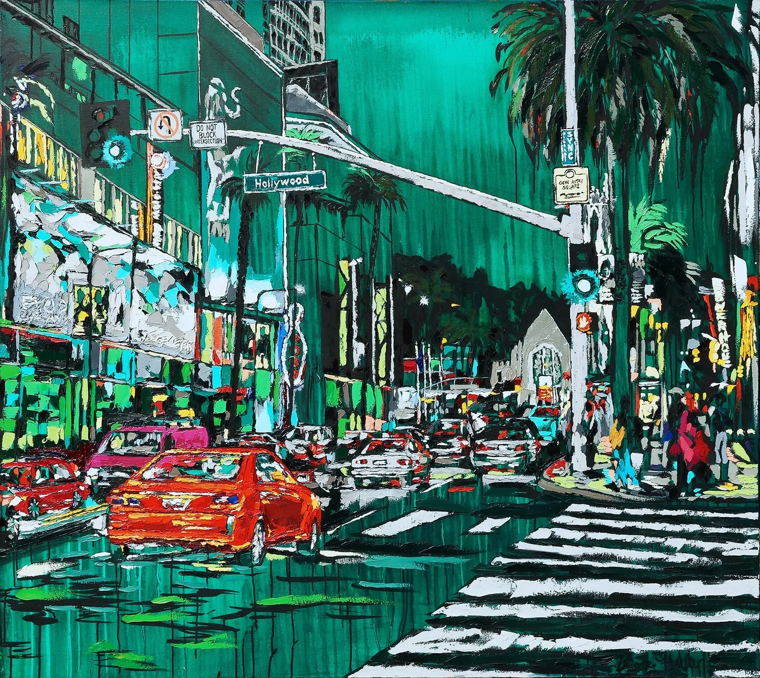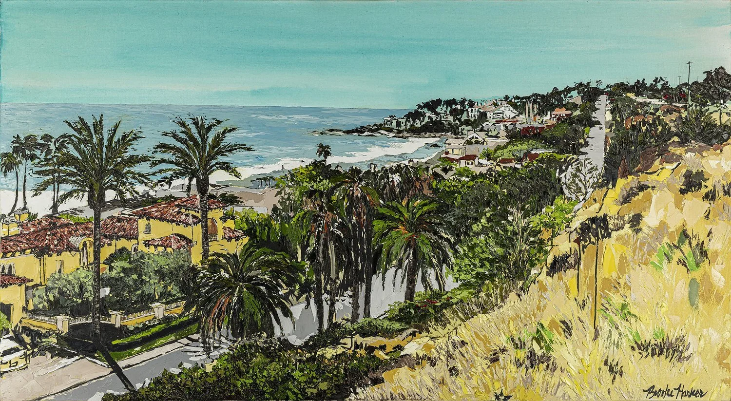 Brooke Harker is a contemporary artist based in Los Angeles, California. Her lively paintings of cities and coastal scenes are characterized by energetic brushstrokes in ink and thick oil paint applied with palette knives. These vibrant depictions of daily life capture a sense of motion and highlight moments of synchronicity.