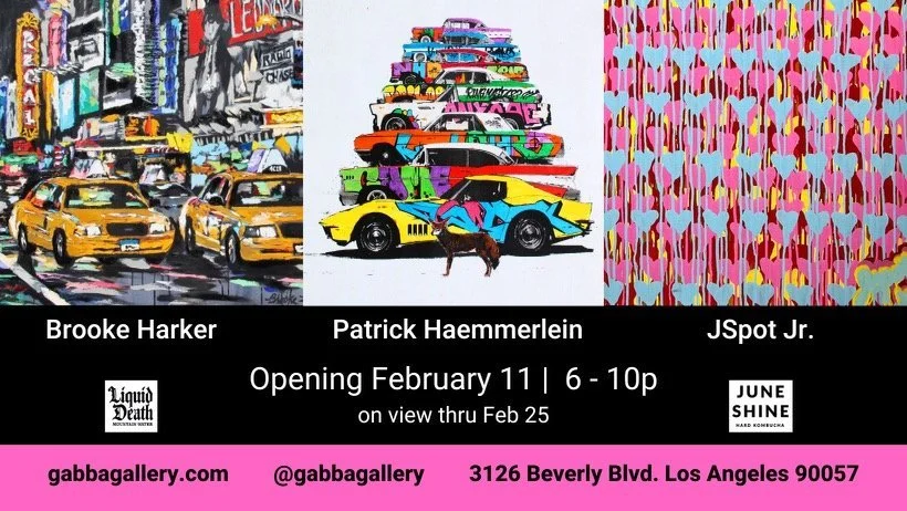 Gabba Gallery invites you to three outstanding new solo shows by Brooke Harker, Patrick Haemmerlein, and JSpot Jr. Curated by Jason Ostro and Elena Jacobson, all three shows open February 11.